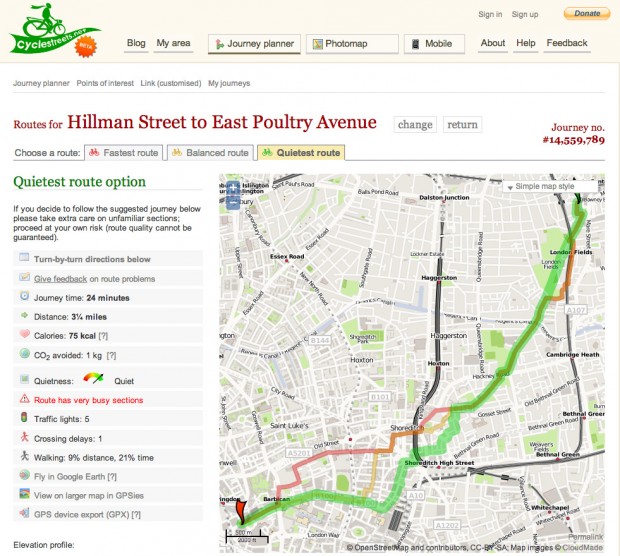 We also love CycleStreets, which is invaluable for finding pleasant backstreet routes. They can be a bit convoluted, but we guarantee that CycleStreets routes will take you to parts of your city you never knew existed.