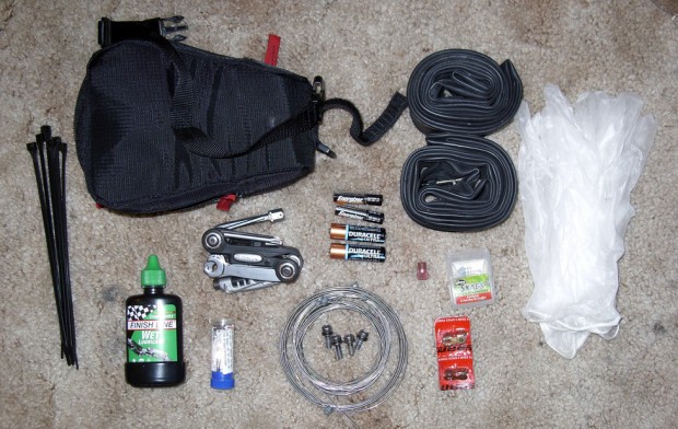 Keep a lightweight waterproof jacket in your bag along with a spare tube, some basic tools, a mini pump and some latex or nitrile gloves to protect your hands from dirt should you need to fix a puncture.