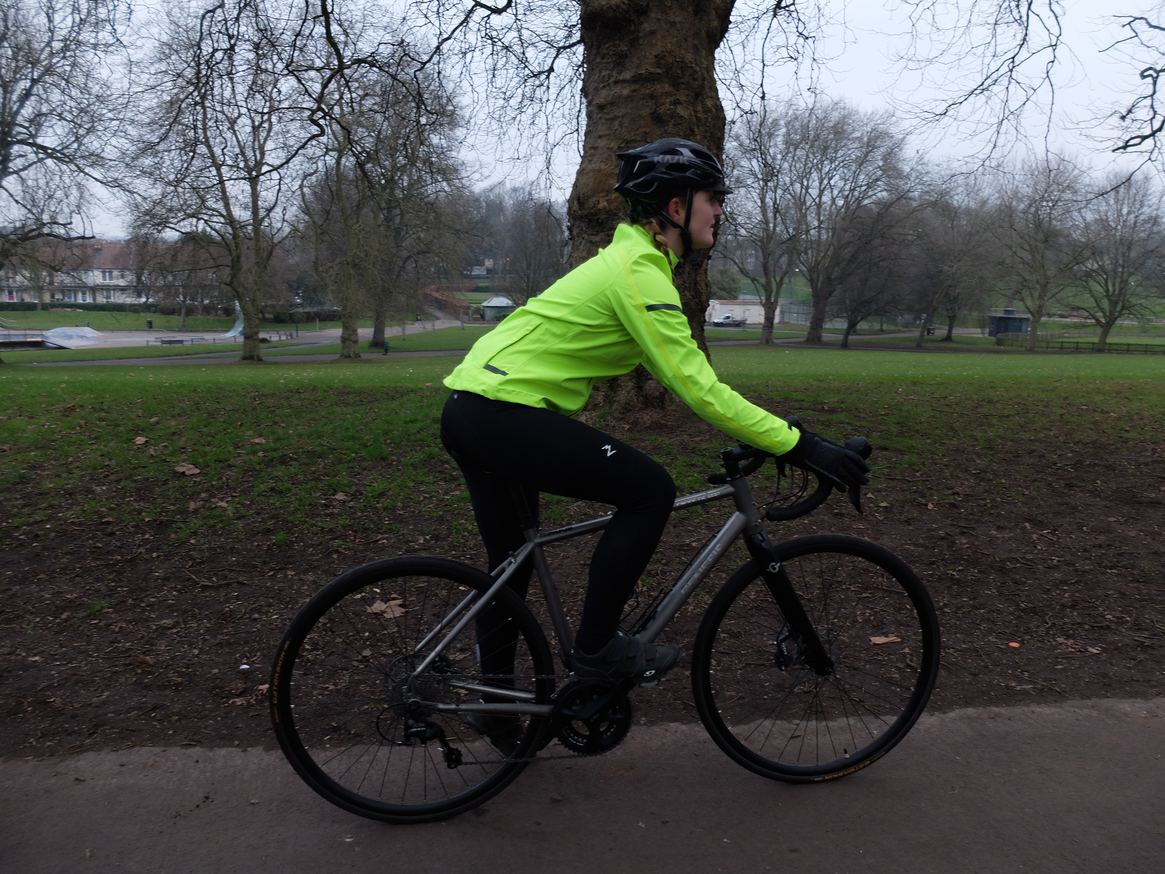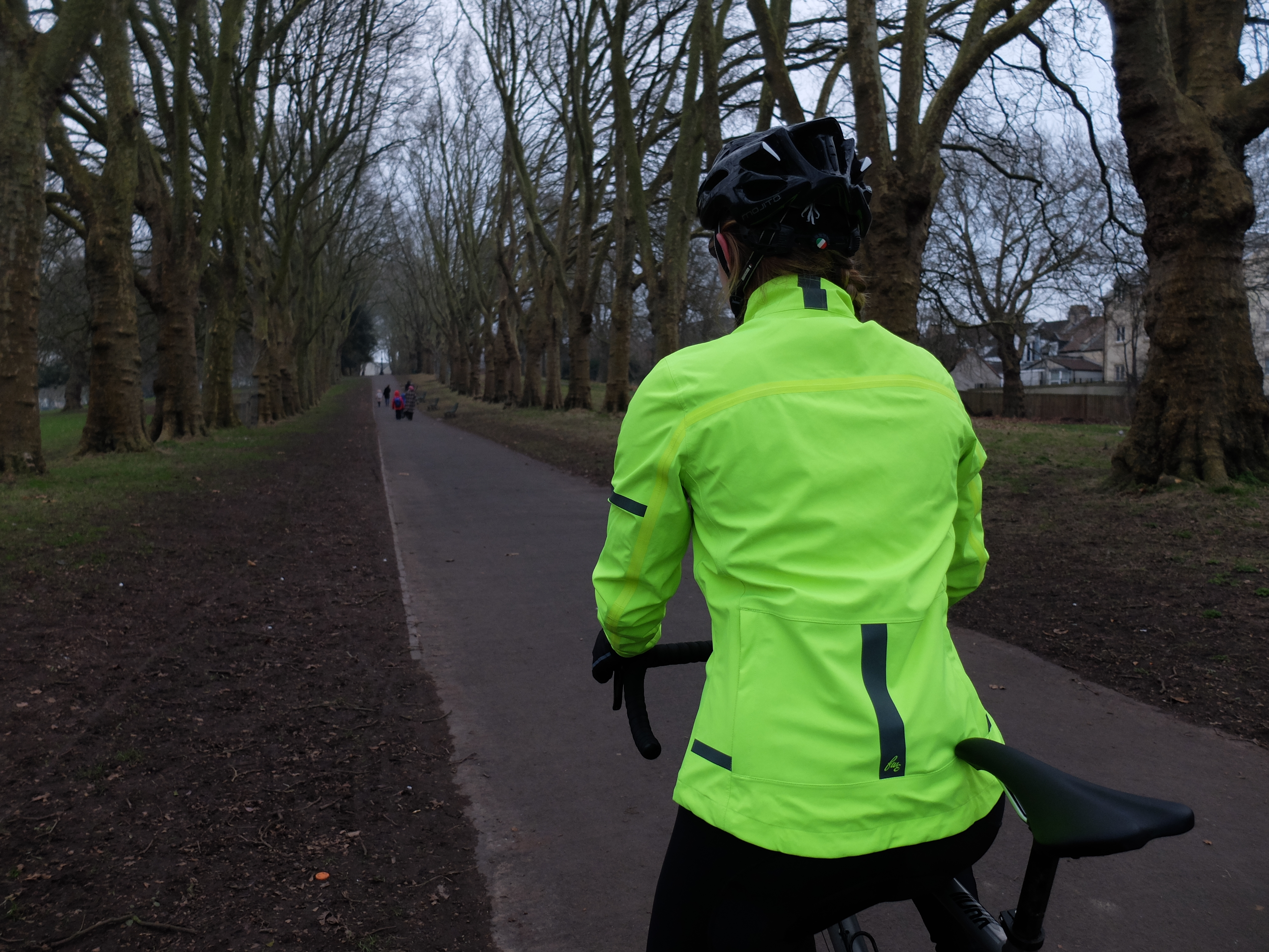 The shaping of the waterproof jacket is incredibly practical without leaving you feeling like another member of the hi-vis brigade. With enough space for layering on colder days, it’s easy to throw on over lycra underlayers or even a casual outfit to nip out in the evening. FWE have managed this without producing a baggy, shapeless jacket, as the clever cut nips in at the waist and flares at the hips, producing an unmistakably feminine outline. Then there’s the adjustables – an elastic pull cord on the hem and velcro sleeve cuffs help to optimise the fit and exclude any chilly draughts.