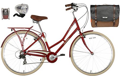 You also get a padded leather-style saddle with springs for comfort, and a rear luggage rack and matching rack bag, plus a light set.