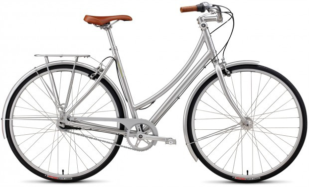 The Globe Daily Step Through is a stunner to look at, with virtually every component from the chain guard to the rack and mudguards is shiny silver! The women-specific saddle and grips are retro coloured in brown and stand out against the shiny backdrop of the bike.