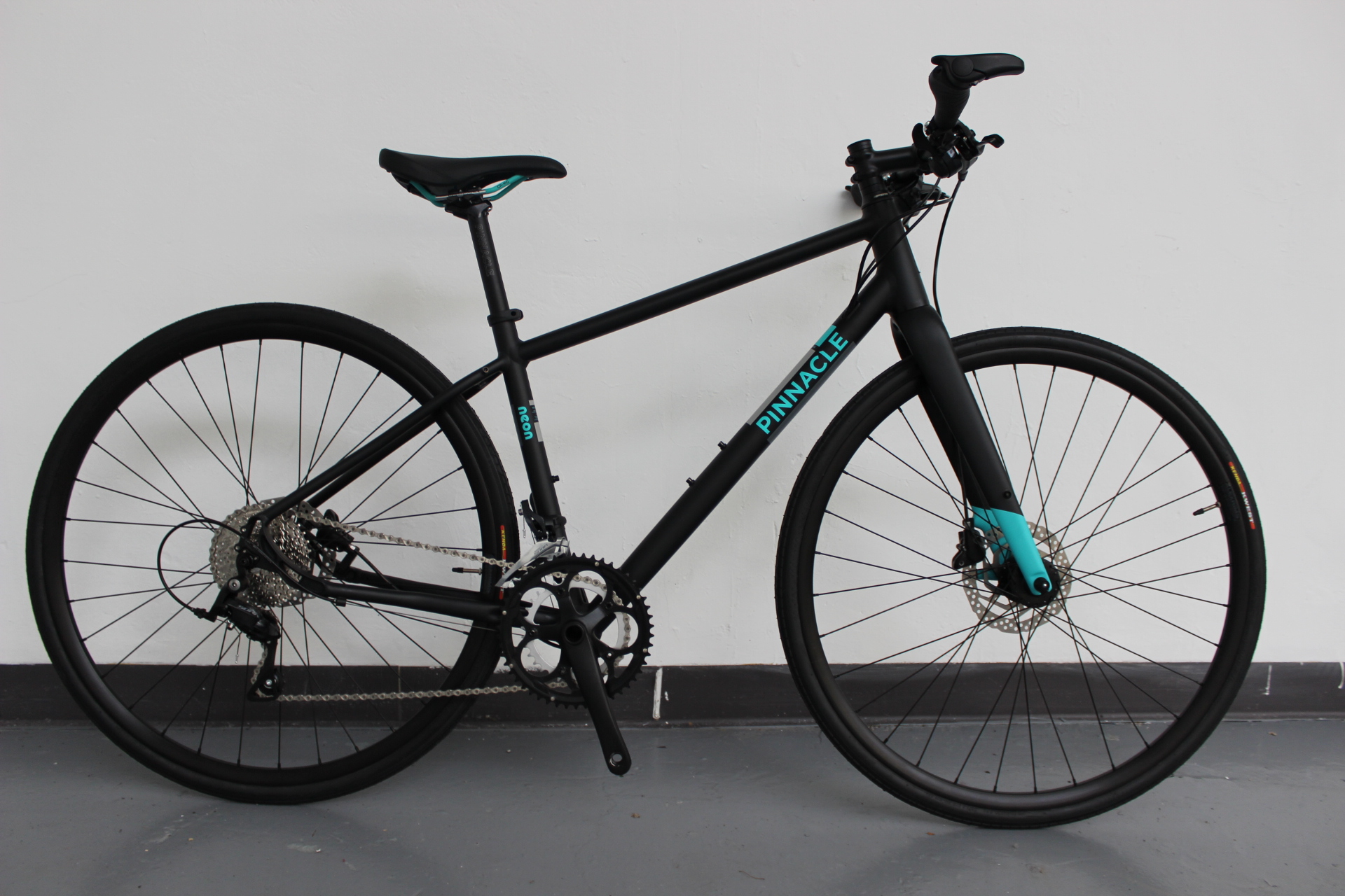 Olsen is yet to create a carbon bike – he’s instead become a master of working with harder-wearing aluminium. A seasoned bike packing racer, Olsen appreciates a bike that’s sturdy, reliable, and able to handle more varied terrain than is typical. Most Pinnacle bikes come with room for wider tyres, and all have eyelets for mudguards and panniers. Though there are road bikes, adventure road/cyclocross bikes and mountain bikes in the range – the hybrid bikes are some of the biggest sellers, perhaps thanks to their practicality and sturdy ride quality.