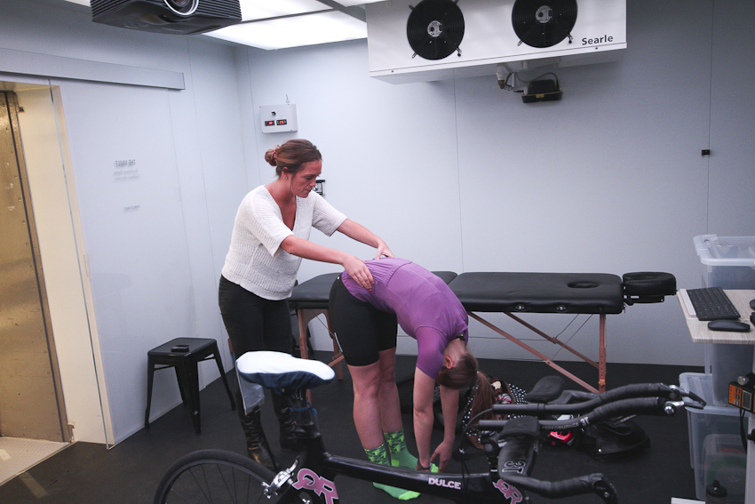 As she does so she explains: “People always think cycling doesn’t result in many injuries because it’s not weight bearing. But we’re very asymmetric as humans. So when we strap ourselves into a symmetrical bike we get problems. That’s why I wanted to do this – to combine my work with bike fit to help people get comfortable and cut down on repeat injuries or niggles.”