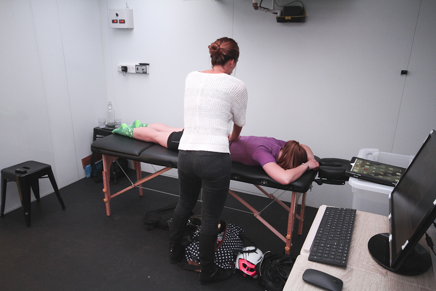 The ‘Bike MOT’ begins with an assessment from Monger-Godfrey. She prods my back, asks me to put myself into various contortions and to ‘push against my hand’ (all stuff you’ll be used to if you’ve seen a few physios).