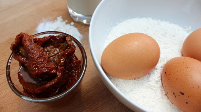We used sun-dried tomatoes that were kept in oil but for a less salty taste make sure to wash them beforehand.