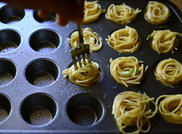 Drain the pasta, coat in olive oil, a sprinkle of salt and pepper and place individual portions in a muffin tin in the oven for 10 minutes. Remove from the oven, allow to cool, wrap in a little foil and your healthy bites are good to go. This is such an easy one to throw in your pocket and eat on the move.