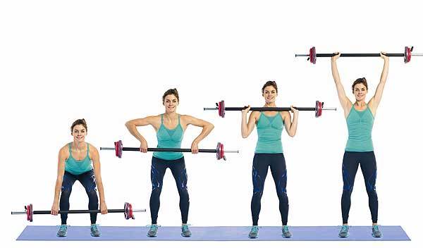 You’ll want to achieve for 10 – 12 reps for each weighted squat, dead lift and clean & press.