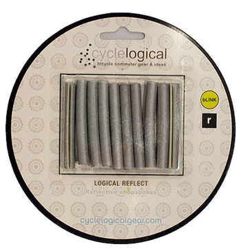 Chopspokes are essentially small reflectors that slot over your spokes. Unlike a common plastic wheel reflector, the Chopspokes are unobtrusive and not noticeable in daylight.