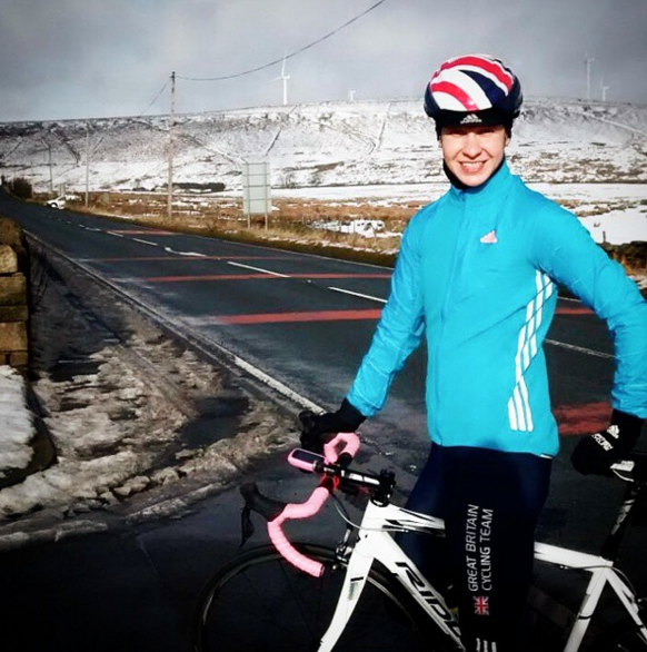 British 4X World Champion, and Elite downhill athlete, Katy Curd, isn’t afraid to get a little dirty on the trails this winter. Covered from head-to-toe in wet mud, this girl still has a smile on her face.