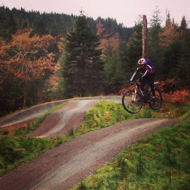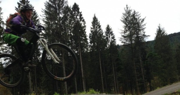 I could hear Adi’s disk brakes humming behind me as we hammered down through the brilliant single track of Coed y Brenin. It was my first time back on the big wheels since my Epic failure in March and I was all knees and elbows. As in, I was keeping them out like my life depended on it.