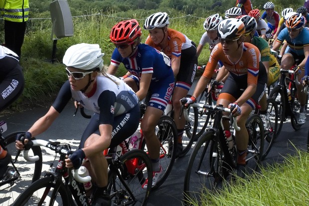 Emma Pooley (left) and Marianne Vos (in orange) are among four cyclists campaigning to allow women to cycle in the Tour de France. Image by Chris Barber via Flickr.