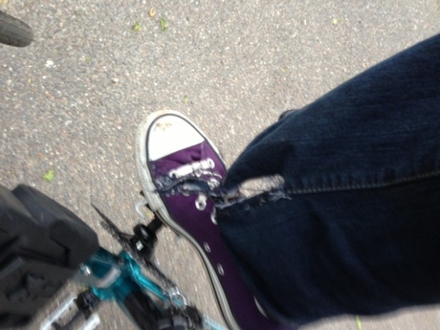 The oncoming rain did persuade me to put a little more spring in my step and as I put on the pressure the bike ate my jeans! An investment in some sort of clip appears necessary as I’m as unlikely to wear skinny jeans as I am to dress in lycra. If you saw my bum you’d appreciate why! I wonder if I can retro-fit a chain guard as well as a basket for my bits and bobs? I can see some more bike related spending this weekend.