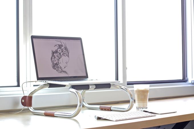 Oh, and did we mention that this laptop stand has been handmade in Montreal and features vegetable tanned leather details? Those are the little extras that make the product more special and the price tag much more pricey.