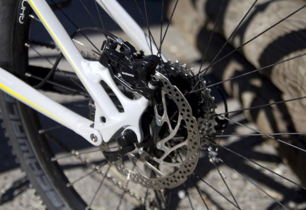 The gear changes were instant and it shifted perfectly whether covered in mud, dust or whilst riding over choppy rock gardens. The Shimano FCM 552 crankset feels solid, the triple chain ring and 10-speed cassette give you the right gearing for the biggest climbs and will keep you cranking on the descents. Even riding over extremely rough and rocky terrain the chain only came off the chainring once in the whole week.