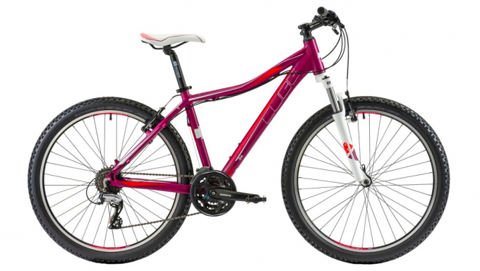 A cheaper alternative to the Pro featured at number three on our list, the Cube Access WLS 26 Ladies Hardtail Bike 2014 in berry and neon red is a comfortable female specific bike.