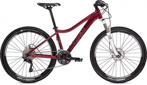 Trek have opted for the traditional 26 inch sized wheels for all frame sizes and also a triple chainring set-up providing 30 gear options. Gear changes are the hardworking and reliable Shimano Deore with upgraded Shimano XT front and rear derailleurs for precise gear changes. The internal cable routing to the front derailleur is a neat feature seen mostly on higher priced bikes. Trek also offer 29ers in the women specific Cali range with the Cali SL costing £1100.