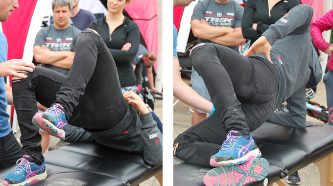 Having signed up, collected my wristband, it was time for the event to officially begin with 10:00 announcements from the event organisers and the World Champ herself. Kicking off with essential training and stretching with Altius Healthcare’s physio, Doug Jones, Rachel demonstrated three important core exercises for mountain bikers.