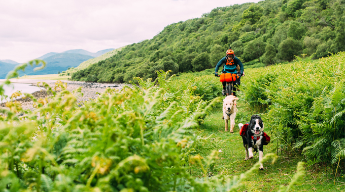 After filling our bellies at the pub we parked up to pack our bags. Ben and I hadn’t done a practice run so this was the test! With sudden visions of bags not fitting on bikes and trying to cram everything into my usual hydration pack maybe we should have tried this out beforehand… All worked out, however, and after a good night’s sleep, at 9.25am, five people, five bikes and two dogs set sail for the Isle of Raasay. Our first challenge came in the form of a mechanical before we’d hit dry land. Of course, one of the handlebar bags had creased the brake hose and oil was now leaking all over the place. A quick fix later though, and we were on our way.