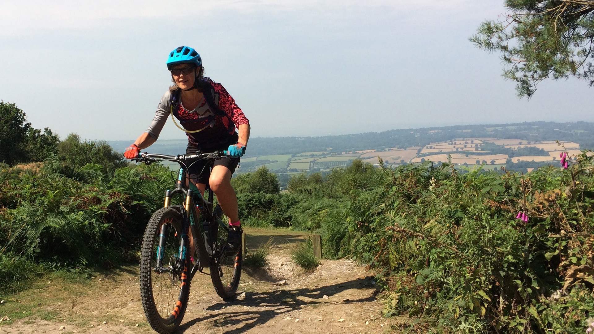 The whole area is really beautiful and there is so much variety. I live in a steep-sided valley so the first climb is hard work but when you get up on to the ridge there are fabulous views and some fun single track in the woods. Woodbury is actually seven commons leading down to the sea. There is an old heathland and an Iron Age fort and many different landscapes. There is a single track around the edges in the woods and the Pebble beds that lie under the area make for some interesting descending.
