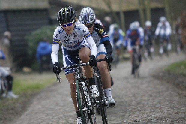 Behind her it was a group of sprinters – Kirsten Wild (Argos-Shimano), Chloe Hosking (Hitec Products UCK), Shelley Olds (Tibco) and Lizzie Armitstead (Boels-Dolmans), with Omloop Het Nieuwsblad winner Tiffany Cromwell (ORICA) and Lotto’s Marijn de Vries, who grew up in the area, and knew the rods very well.