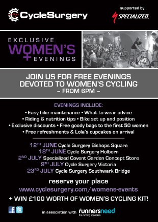 Following the success of their events in 2012, Cycle Surgery have announced a new series of in-store women only evenings during June and July.