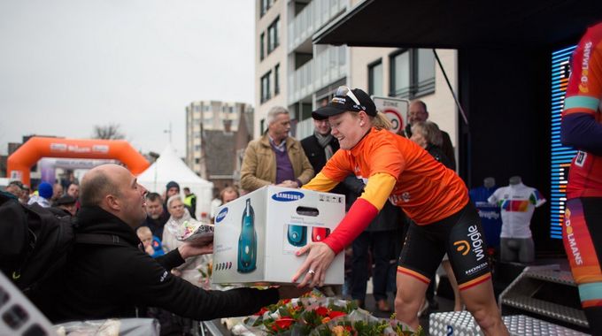 Jolien D’Hoore Receives Vacuum Cleaner for Winning UCI Road World Cup Race