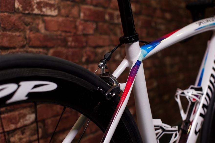 Lauren Parenti, Lead Women’s Bike Graphic Designer took extra special care to ensure that Armitstead’s bike was perfect for her – she said: “Lizzie is super classy and her WC bike should represent that, but it should also remind her how amazing and strong she was that day. It needs to be bold and timeless.”