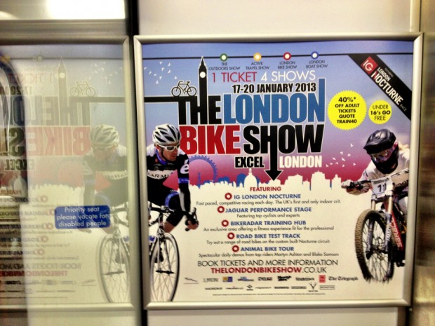 Getting the tube across London with my bike was actually a bit of a mission and I was pretty relieved when I finally made it to the ExCeL where the Bike Show was taking place. If I’d seen this poster on the underground (spotted later on by Jacob Gibbins) it might have made my journey a bit more interesting!