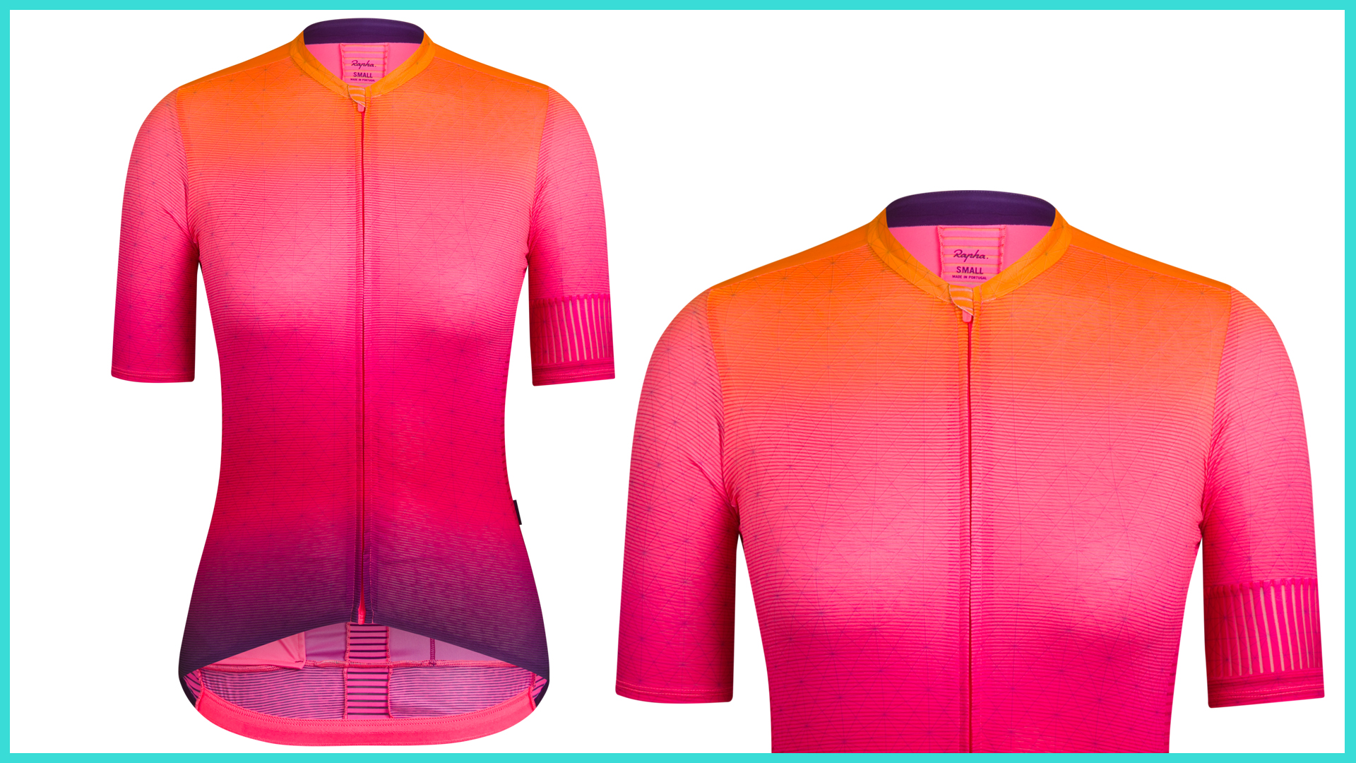 The short-sleeved jersey is made from lightweight fabric, perforated for breathability on those hot, hard rides (maybe one to save for the summer months). The striking print, though rises from deep blue and purple, through red, pink and orange to a warm yellow. It’s vibrant, fun and cheerful. Much like the Aussie rider herself.