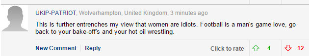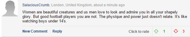 A mistake by one player for some reason turns into an argument about the validity of women playing football at all, and by extension, women playing sport.