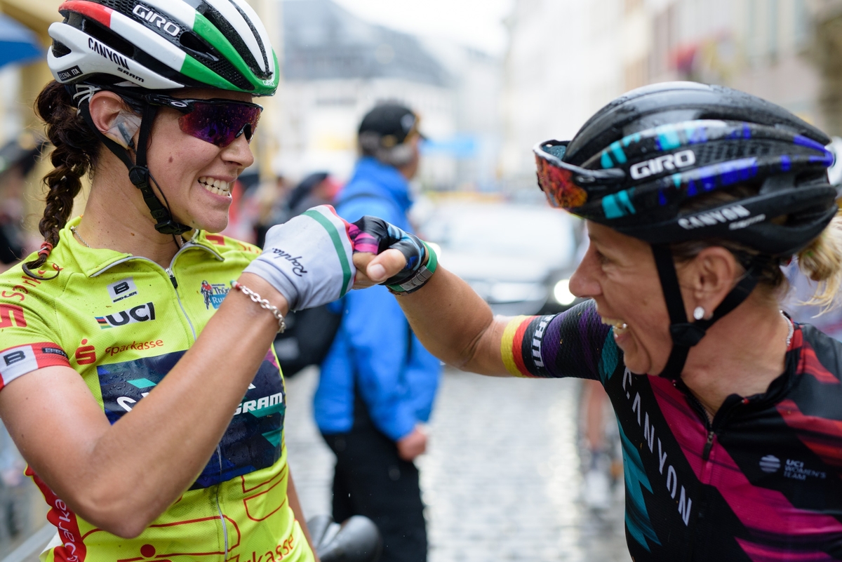 Canyon//SRAM’s Elena Cecchini was crowned the overall winner of Thüringen Rundfahrt today after a wet race on stage seven was won my Coryn Rivera (United Health Care) when a breakaway was allowed to make it to the finish line.