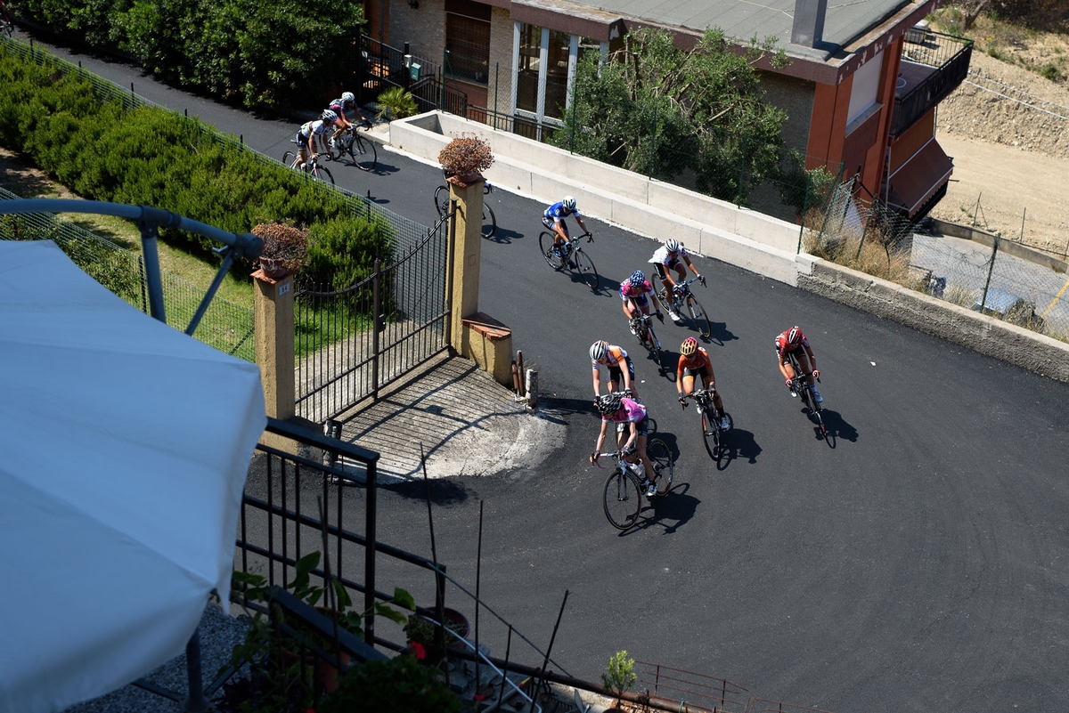The 118km race from Andora to Alassio – finishing atop of the Madonna della Guardia – began with a large group breaking from the main peloton. However, on the second key climb of the day Kasia Niewiadoma (Rabo-Liv) attacked solo – building up quite a lead that stuck until the next climb.