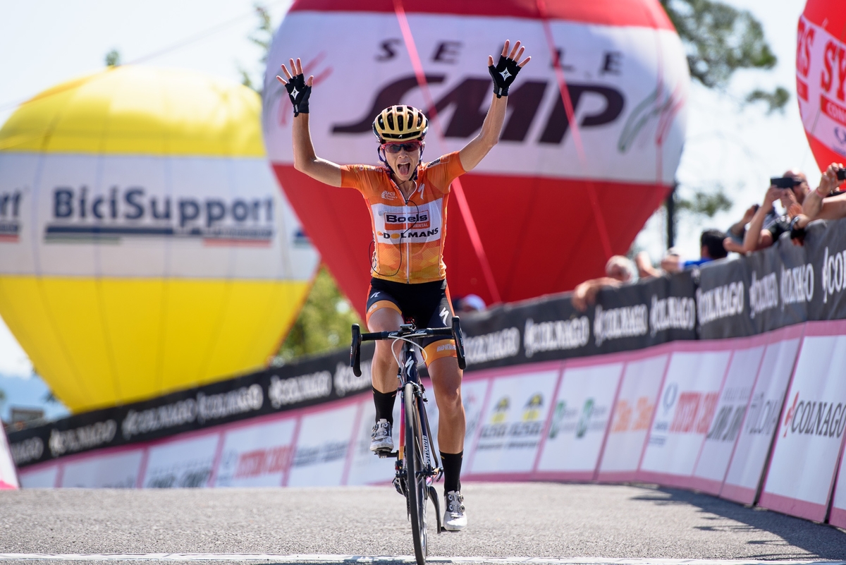 Abbott has won two Giro Rosa Overall titles before, so she’s an obvious threat. However, Boels-Dolmans delivered a clear message today as Stevens attacked with 2km to go to take a solo win, followed by Guarnier who is now back in Pink.