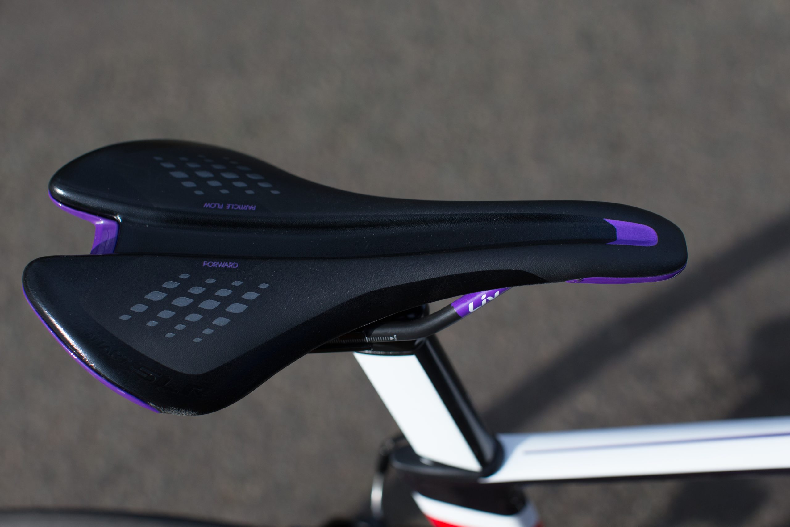 This year Liv also introduced a brand new saddle fitting system, with a gel pad that can be used in store to determine a rider’s sitting position. Saddles are available with differently shaped channels; ‘forward’ models are fitted if the woman rotates forwards whilst the ‘upright’ saddle is for those who rest back on their sit bones.