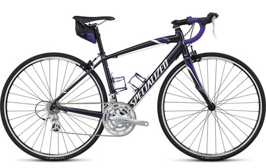 Most of the moving components are Shimano 2300 while Specialized provide their own brand, good quality components to finish the bike off nicely. This even includes a bottle cage and saddle bag! No pastel colours here, black and purple prevail.