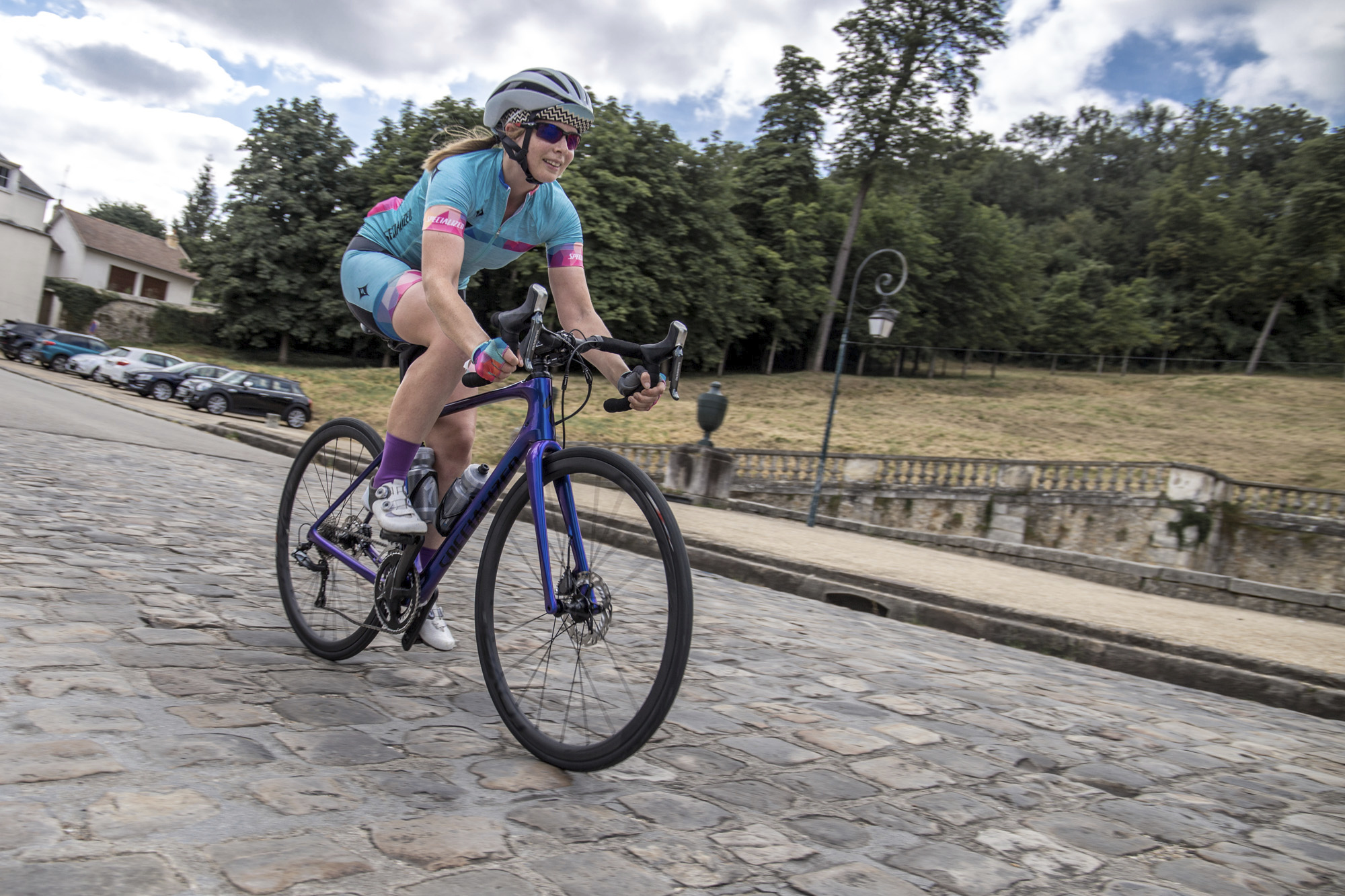 We managed two rides with Specialized in France back in July, one short 30 mile spin and a second 65 mile outing where we were split into A, B and C groups. Of course I forced myself to ride with group A, which included some pretty serious hitters and some UCI level racers. I was a little concerned I should probably have dropped back to the B academy, but actually the ride proved to be a great display of what makes riding with other women so much more enjoyable: fun on the flats and sufferfests on the hills that always meet at the top with shared claims to ‘nearly dying’.