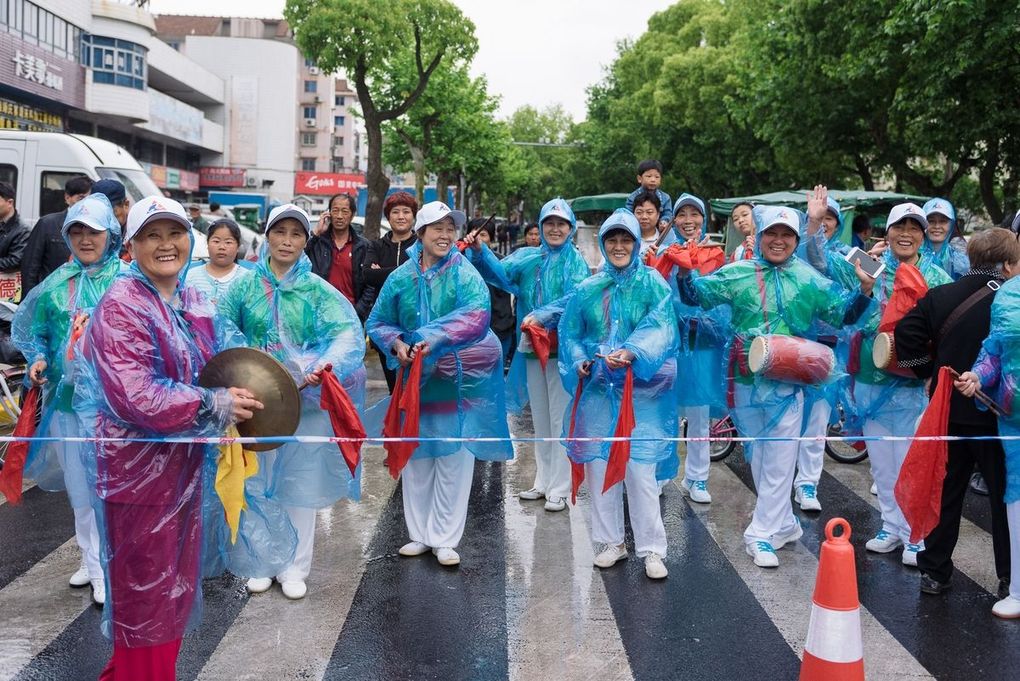 Damp but happy, one of the bands on the roadside