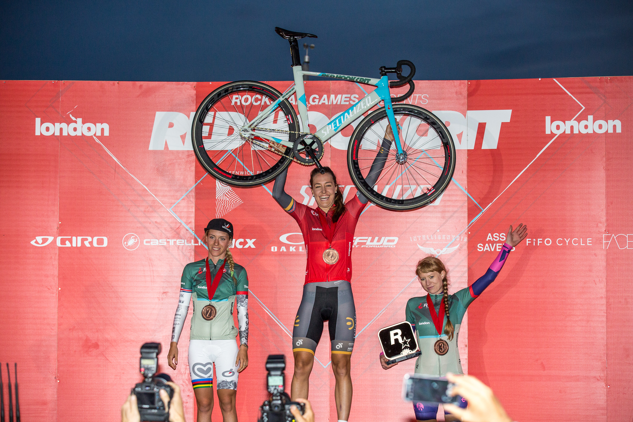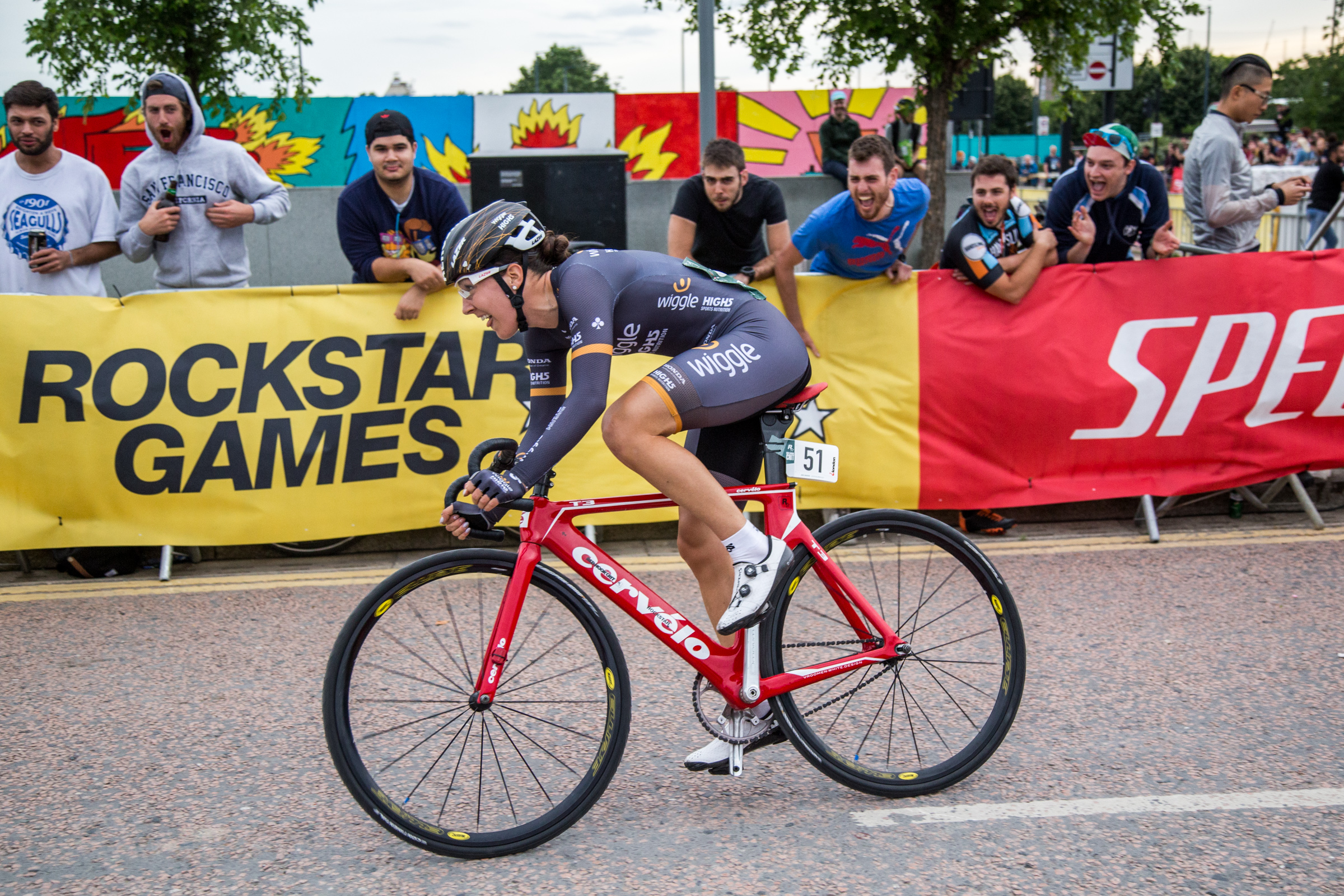 In particular, team pursuit Olympic Champion Dani King, who was making her debut at the race, after failing to make the Team GB selection for Rio. She had a storming race, too. The WiggleH5 rider obliterated the field, which included world fixed-gear champion Jasmine Dotti from Italy. Speaking at the end of the race Dani said: “The race was absolutely amazing! I had been apprehensive about what it would be like, especially as you are racing with no brakes, which is scary.” After a number of laps in a breakaway that included Jasmine Dotti and series leader Ainara Elbusto of Spain, King launched herself off the front and lapped the field, much to the excitement of the large crowds on this breezy Saturday evening. Commentator Gabe Lloyd, described King’s performance as an “impressively dominant performance” and also praised the way the way that the British had got behind Red Hook when it is just in its second year.