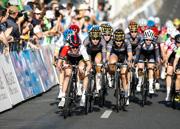 The women’s event consists of four stages, kicking off on Saturday and finishing on Tuesday – and top ranked UCI women’s team Wiggle High5 seem to be cleaning up well on the podium. The black and orange army currently sit in top position on the team standings, though it’s Katrin Garfoot of Orica-AIS in first on the general classification.