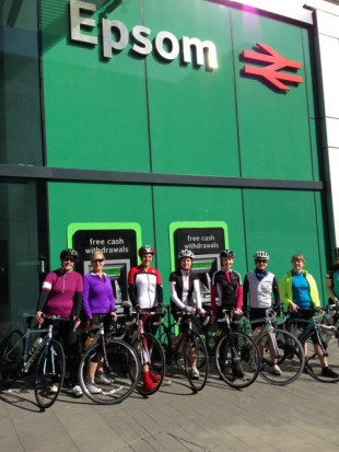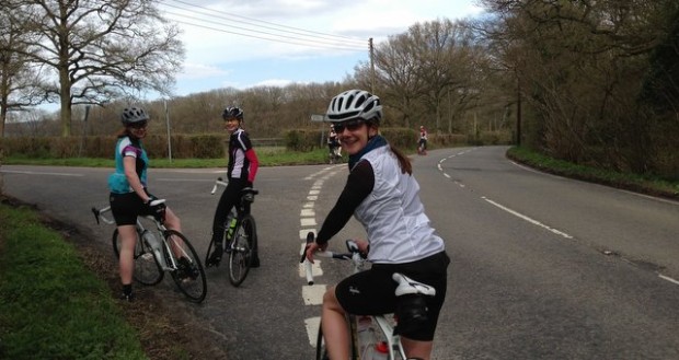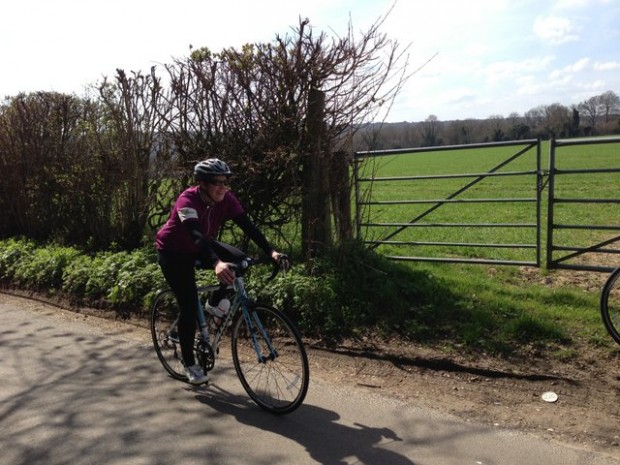 While thousands took to the start line of the London marathon on Sunday, 7 ladies and Gavin, this month’s token bloke, were arriving at Epsom station for the start of the second Total Women’s social 60 mile cycle. Blessed with bright blue skies and the thermometers reaching balmy heights of 14 degrees, we set off to track the tail end of a local sportive route. Following this route had proved handy as team leader Kirsty was still getting to grips with her shiny new Garmin 810, so we spent much of the day following a series of very well positioned red arrows.